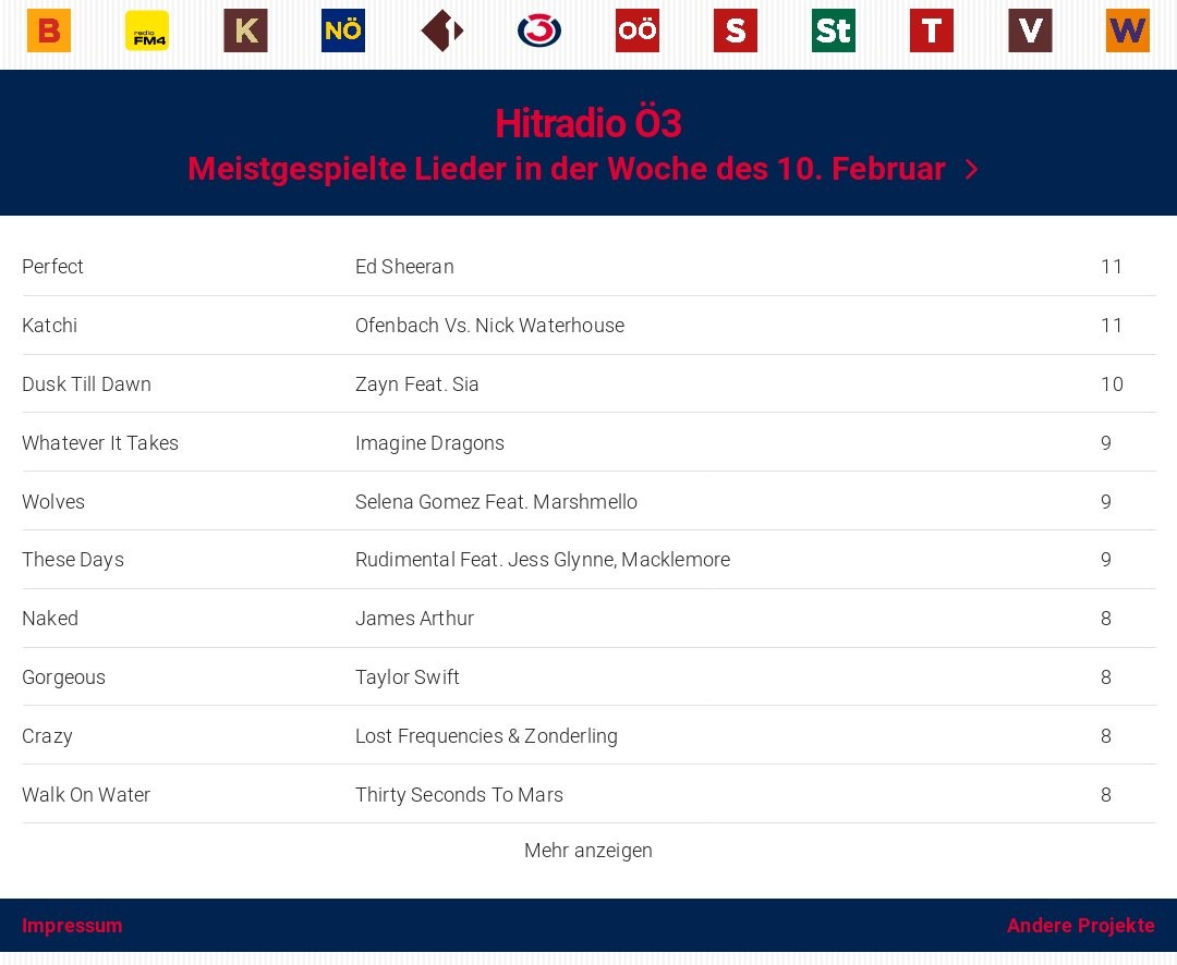 Die meistgespielten Lieder im österreichischen #Radio Jetzt nicht nur mit Ö3, FM4 und Radio Wien, sondern auch Kronehit, Radio Arabella und 88.6!